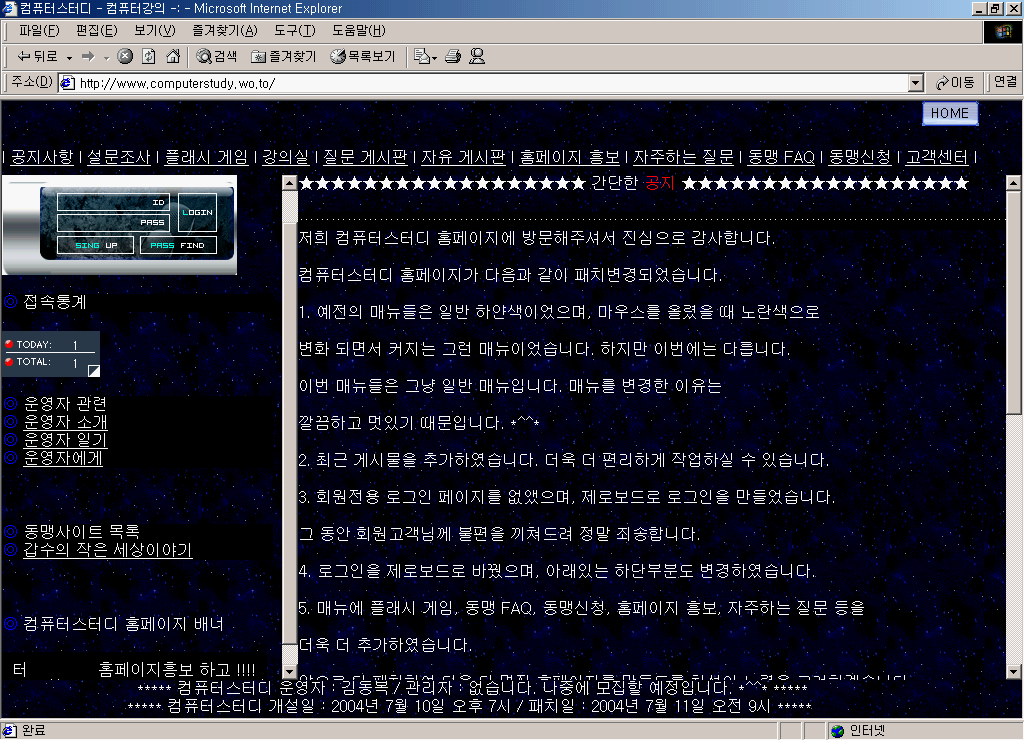 ȨÆäÀÌÁö À̸§ : ÄÄÇ»ÅͽºÅ͵ð ȨÆäÀÌÁö À̸§ÀÇ ¶æ : ÄÄÇ»ÅÍ °øºÎ, ÄÄÇ»ÅÍ °ÀÇ °³¼³ÀÏ : 2004³â 7¿ù 10ÀÏ