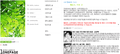 ¾È³çÇϼ¼¿ä Çï·Î¿ì, ³ª¹«´åÄÄÀÔ´Ï´Ù. Çï·Î¿ì ³ª¹«´åÄÄÀº ½Ã¸¦ ÁÖÁ¦·ÎÇϴ ȸ¿øÁ¦ °³ÀÎȨÆäÀÌÁöÀÔ´Ï´Ù. Ãßõ½Ã, ½ÃÀÎÀÇ ¸», °¡Á·¸ÞÀϸµ '³ª¹«³¿»õÀ̾߱â', ¹®ÇÐÀÚ·á, ½Ãȸ¦ º¸½Ç ¼ö ÀÖ½À´Ï´Ù. ½Ã À̿ܿ¡µµ ³ª¹«°¡ ¸¸µå´Â ¾Æ¿ô·Î±×ÀÎ ½ºÅ², Á¦·Îº¸µå ½ºÅ²°ú ȨÆäÀÌÁö ¸¸µé¶§ µµ¿òÀÌ µÇ´Â Á¤º¸µé·Î ²Ù¸çÁ® ÀÖ½À´Ï´Ù.