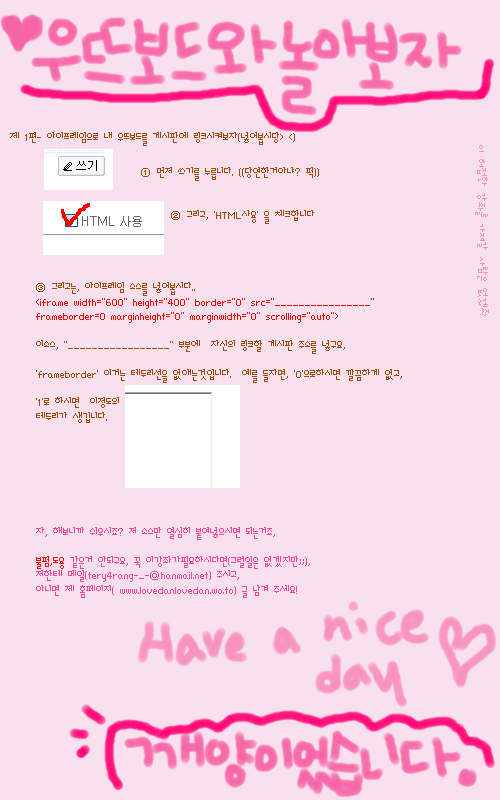 | :::: <<±ú¾çÀÇ °ÁÂ>>Á¦1Æí-³» º¸µå¸¦ °Ô½ÃÆÇ¿¡ ³Ö¾îº¸ÀÚ :::: |