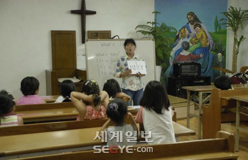 ¿ÃÇØ·Î °áÈ¥ 7³âÂ÷ÀÎ ±×³à´Â À¯Ã¢ÇÑ ¿µ¾î ½Ç·ÂÀ¸·Î 1³â¿© ÀüºÎÅÍ ¾îÇб³À°ÀÌ ºÎ½ÇÇÑ ÀÌ Áö¿ª ¾ÆÀ̵éÀ» ¸ð¾Æ ¿µ¾î¸¦ °¡¸£Ä¡°í ÀÖ´Ù. »çÅõ¸®±îÁö ¼¯´Â Çѱ¹¾î ±¸»ç ´É·ÂÀ¸·Î °¡¸£Ä¡´Â ¼Ø¾¾°¡ ¶Ù¾î³ª ¾î¸°ÀÌµé »çÀÌ¿¡´Â ¡®¾ÆÀÌ´Ù ¾ÆÁܸ¶¡¯·Î ÅëÇÑ´Ù.