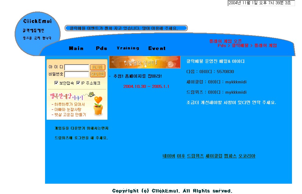»õ·Î¿î ÀÎÅÍ³Ý -=Ŭ¸¯¿¡¹Ä=- Ç÷¡½¬ °ÔÀÓ Á¦°ø, ÇÑ´Þ¿¡ Çѹø¾¿ À̺¥Æ® ¼±¹° ÆÎÆÎ~